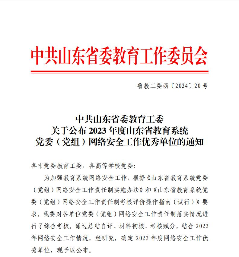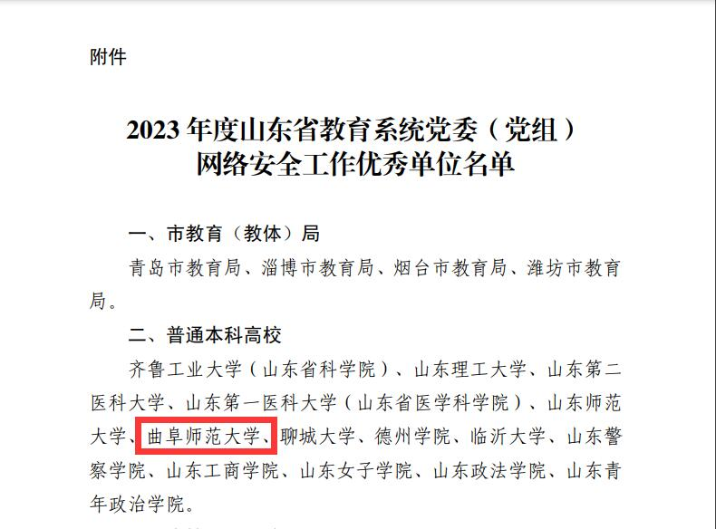 曲阜师大网络信息中心讯 3月10日,中共山东省委教育工委发布《关于公布 2023 年度山东省教育系统党委(党组)网络安全工作优秀单位的通知》,包括万象城手机网页版登录入口在内的14所本科高校获得表彰。