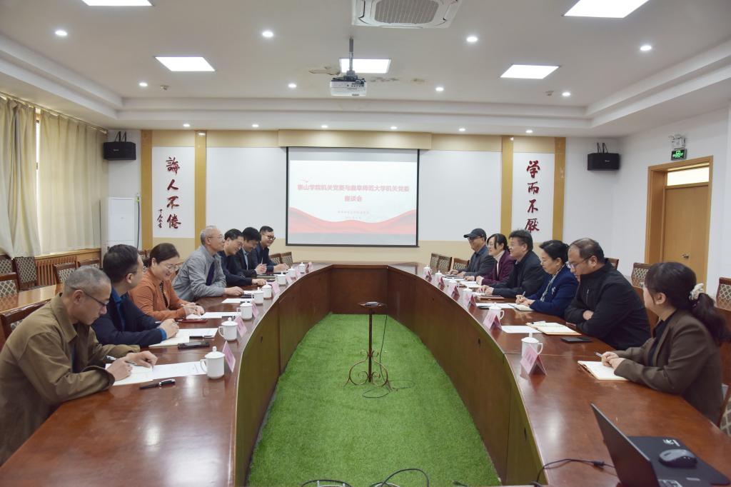 曲阜师大机关党委讯 4月8日上午,泰山学院机关党委书记李春海率领机关党委全体委员,来校调研交流机关党建工作。曲阜师大机关党委全体委员和工作人员参加座谈交流。座谈会由机关党委书记刘建新主持。