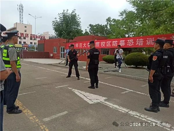 日照市公安局东港分局特警大队及驻大学城第三警务中队负责人,日照校区党委、学生工作处、保卫处相关负责人参加活动。