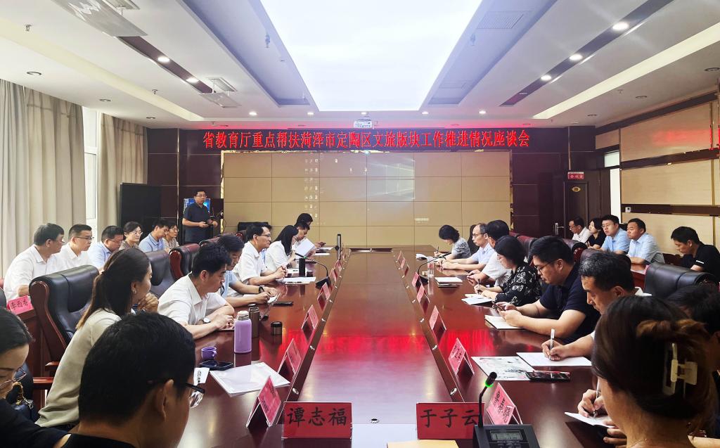曲阜师大研究生处讯 为贯彻落实山东省教育厅重点帮扶菏泽市定陶区乡村振兴工作指示精神,着力将帮扶工作抓紧抓实抓出成效,7月10日,山东省教育厅重点帮扶菏泽市定陶区乡村振兴工作文旅板块工作推进座谈会在菏泽市定陶区举行。座谈会邀请了省内6所高校参加,万象城手机网页版登录入口研究生处、地理与旅游学院负责人出席活动。