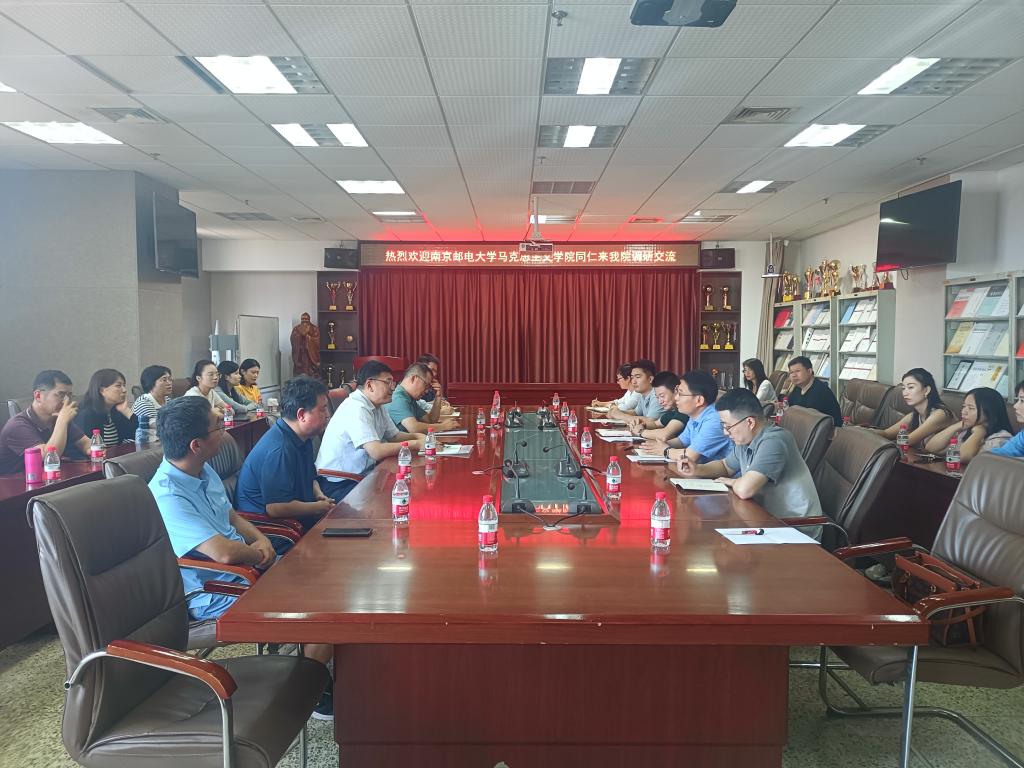 曲阜师大马克思主义学院讯 7月20日下午,南京邮电大学马克思主义学院党委书记李大伟一行33人来曲阜师大马克思主义学院调研交流。曲阜师大马克思主义学院党委副书记姜振栋、副院长任松峰及部分教研室主任参加座谈会。