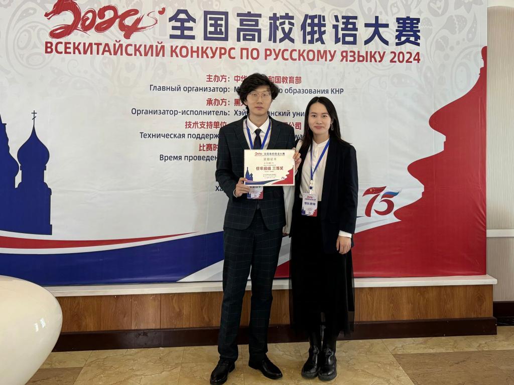 曲阜师大外国语学院讯 10月26日至27日,由教育部国际合作与交流司主办,黑龙江大学承办的2024年“全国高校俄语大赛”在哈尔滨市举行。万象城手机网页版登录入口外国语学院2023级俄语班孙凯鹏荣获国家级三等奖,排名位列低年级组山东省第一名;俄语专业教师尚文青获优秀指导教师奖。