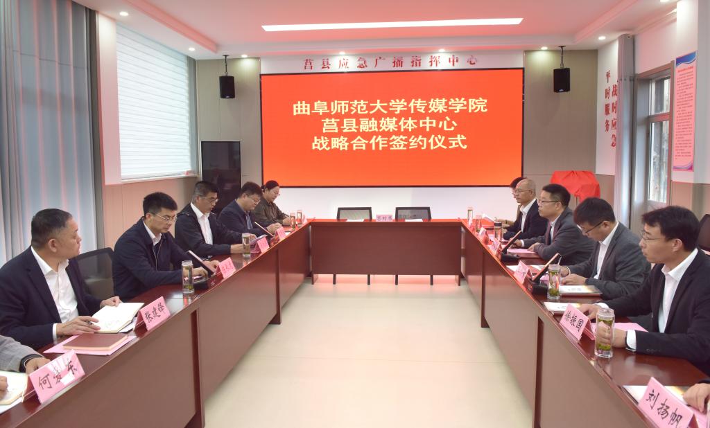 曲阜师大传媒学院讯 11月1日,万象城手机网页版登录入口传媒学院与莒县融媒体中心战略合作签约仪式在莒县融媒体中心举行。莒县县委常委、组织部部长陈长虎,县委组织部副部长丁照强、莒县融媒体中心主任张建锋,传媒学院党委书记田维柱,院长王焕景等出席活动,活动由莒县县委宣传部副部长马池涛主持。