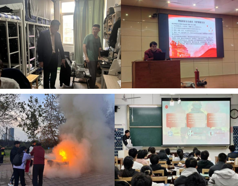 学院党委副书记孙旭春带领辅导员对学生宿舍进行安全隐患排查。学院联合经济学院举办安全知识讲座以及消防安全演练,邀请保卫处负责老师为学生们讲解消防安全、电信网络诈骗、交通安全、国家安全等方面的知识。同时,在2024级班级中分别开展消防安全主题宣讲活动,介绍消防安全的重要性、火灾隐患排查与预防措施、消防设施使用方法,以及火灾逃生自救的正确方法和注意事项,使同学们深刻认识到消防安全的重要性。