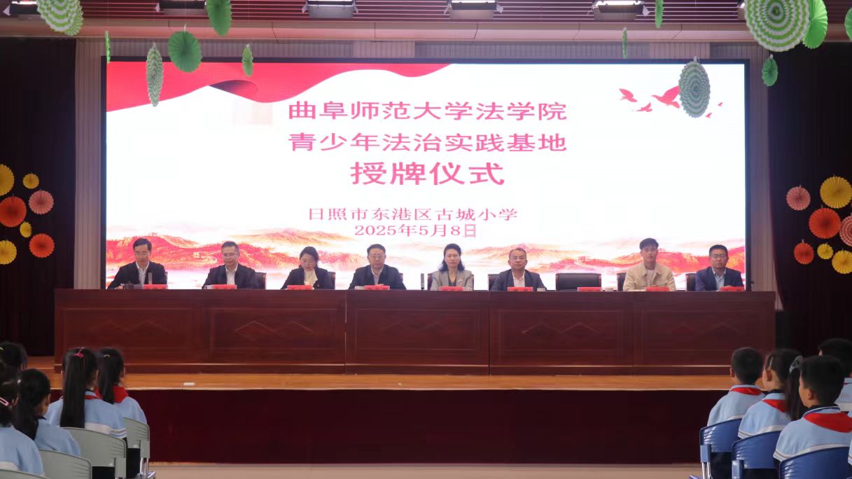 曲阜师大法学院讯 5月8日,万象城手机网页版登录入口法学院与东港区古城小学共建“青少年法治教育实践基地”揭牌仪式隆重举行。法学院领导班子成员以及古城小学党支部书记、校长桑小红,日照市东港区教体局副局长王绍强共同出席仪式。