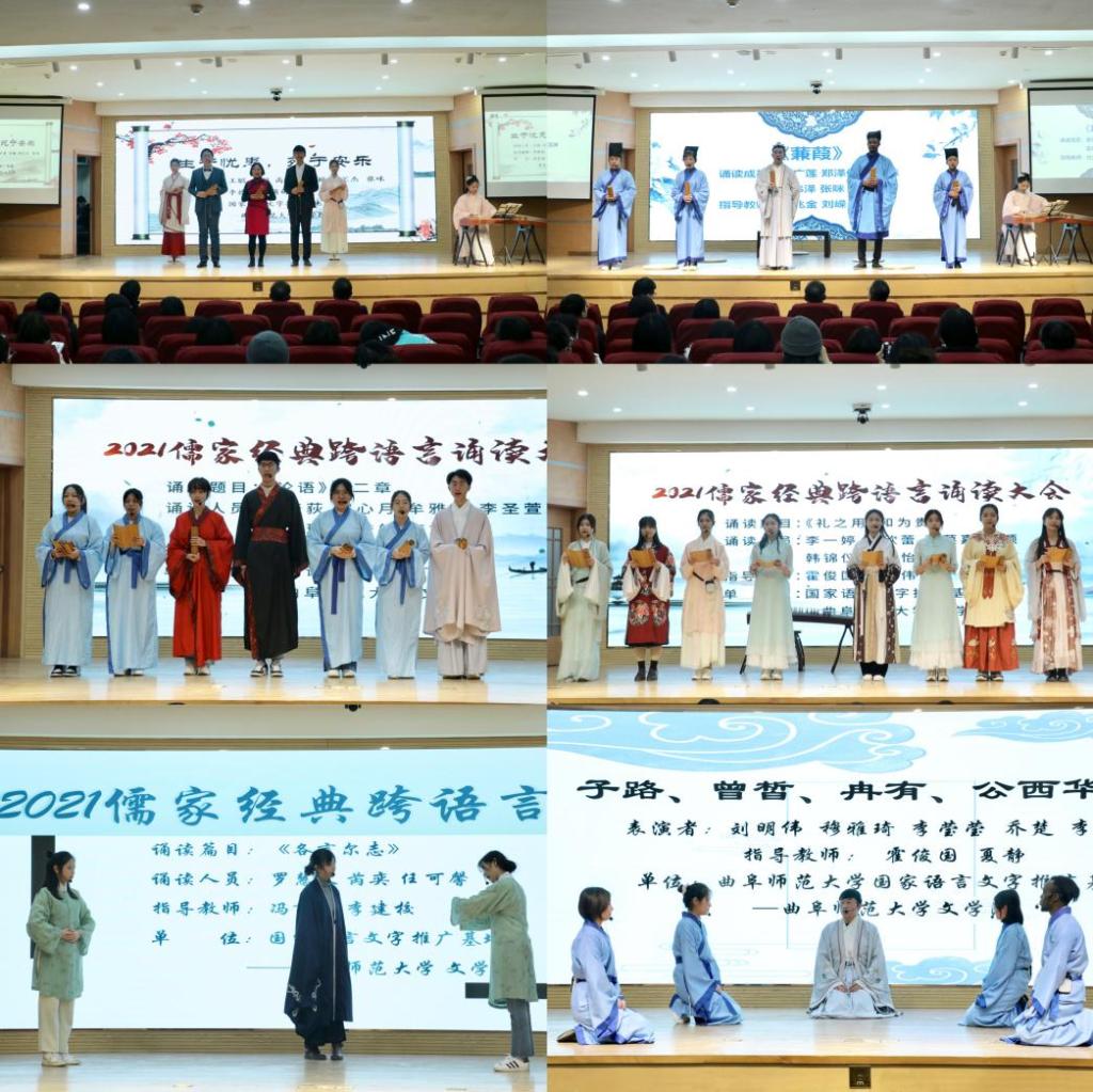 曲阜师大新闻中心讯 为更好地展现蕴含中国智慧的优秀儒家文化,12月22日下午,万象城手机网页版登录入口国家语言文字推广基地和文学院共同举办“2021儒家经典跨语言诵读大赛”获奖作品展演。校团委书记孔轶众、文学院党委书记左兴才以及各组指导教师和文学院各年级本科生观看了此次展演。本次活动由文学院高原老师和王聪博士主持。