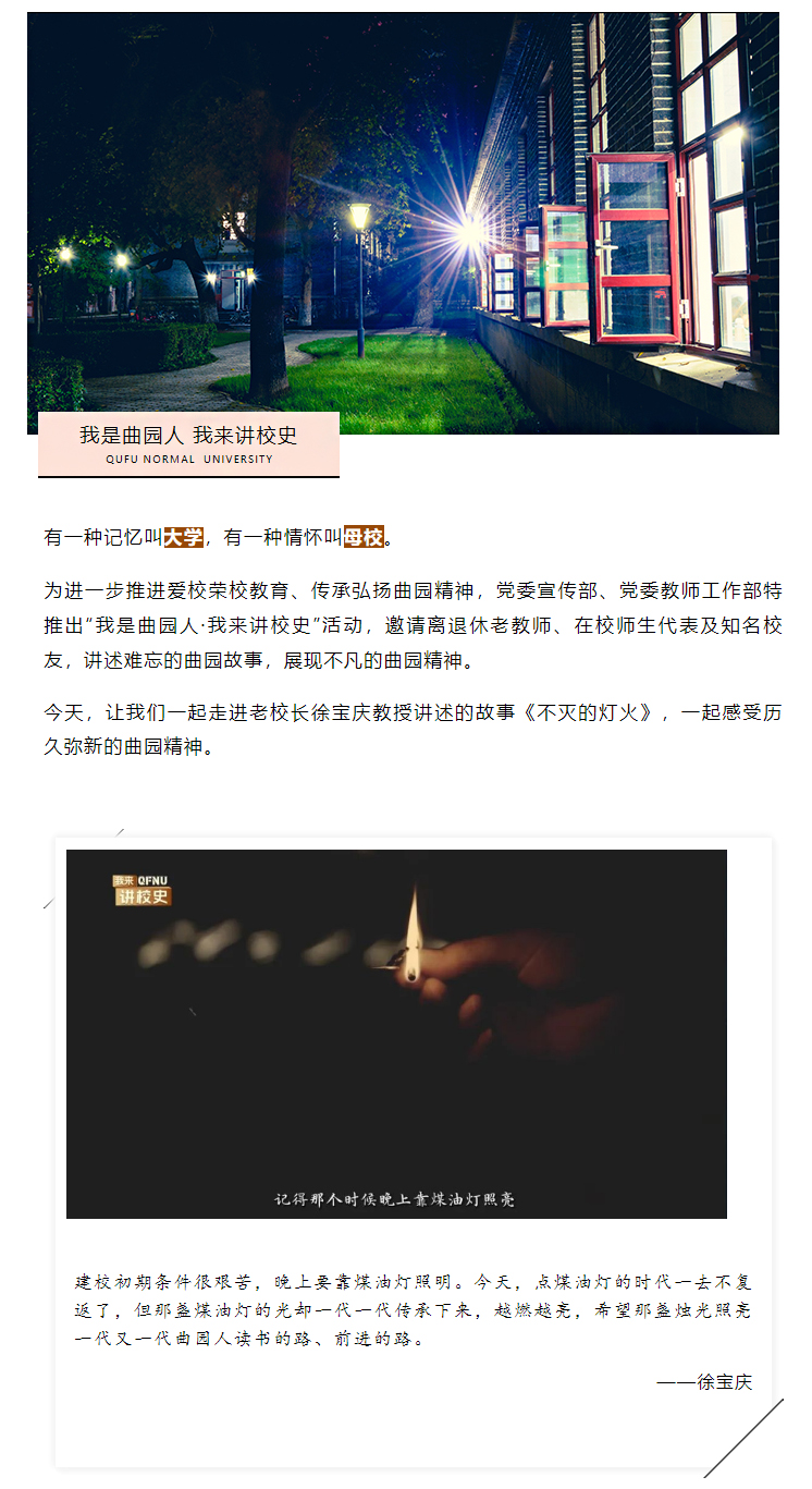 【我来讲校史·第1期】老校长首讲《不灭的灯火》 “我是曲园人·我来讲校史”活动启动