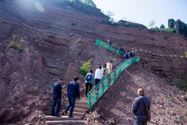 专家现场考察古生物化石情况
