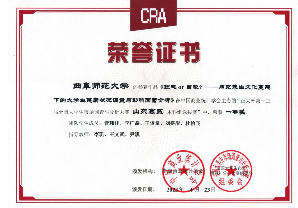 科研竞赛方面,我指导学生获得第十三届全国大学生沙盘模拟经营大赛全国总决赛一等奖、国家级全国大学生创新创业训练计划项目、第十三届全国大学生市场调查与分析大赛山东赛区本科组一等奖等省级以上竞赛获奖8项。社会实践方面,我获得2020、2021年万象城手机网页版登录入口“镜头中的三下乡”社会实践活动优秀指导老师,指导队伍分别获2021、2022年万象城手机网页版登录入口寒假社会实践校级一等奖。学术论文方面,我指导的本科论文获得2020年度万象城手机网页版登录入口优秀学士学位论文,2022年至2023年指导本科生完成学术论文5篇,已发表4篇。在我指导的2023、2024两届本科生中,有8人成功保研或考研,其中6人被录取到中国人民大学、北京工业大学等双一流高校,1人被东北财经大学录取,1人被圣安德鲁斯大学录取。