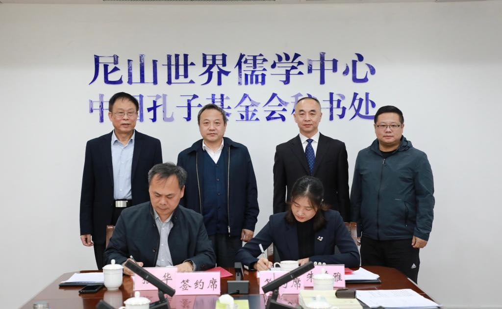 会上,曲阜师大社会科学处处长朱莉雅代表学校与尼山世界儒学中心(中国孔子基金会秘书处),就编纂项目签署了协议。