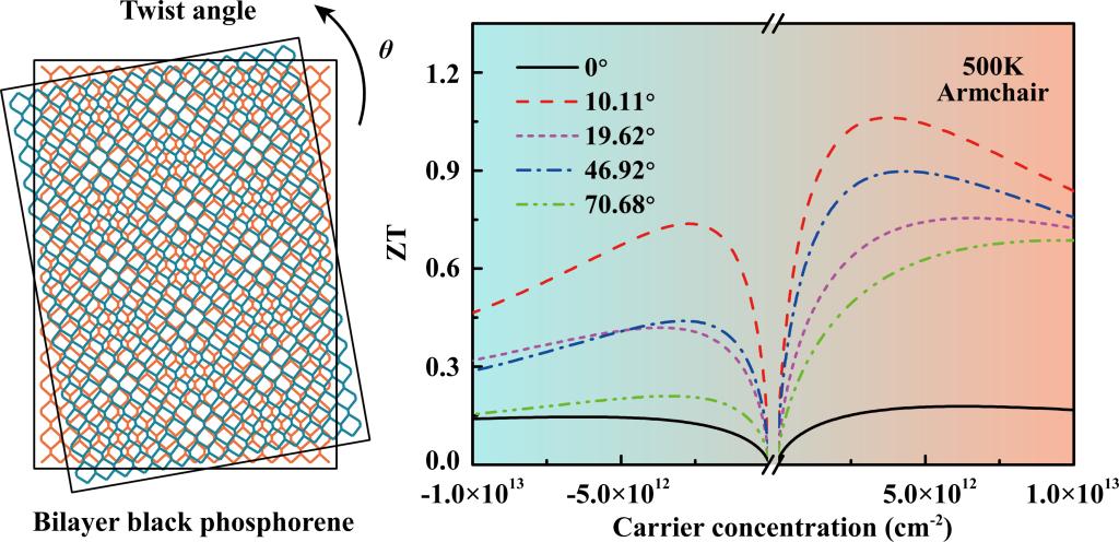图为转角黑磷烯结构示意图与热电优值ZT