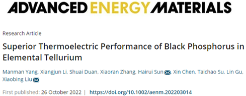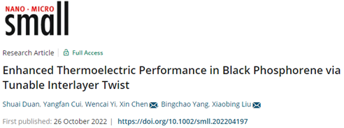 曲阜师大新闻中心讯 近日,曲阜师大物理工程学院刘晓兵教授和陈欣教授研究团队在黑磷基柔性热电材料的设计与制备领域取得重要进展,相关研究成果以“Superior Thermoelectric Performance of Black Phosphorus in Elemental Tellurium”与“Enhanced Thermoelectric Performance in Black Phosphorene via Tunable Interlayer Twist”为题,在10月26日分别发表于材料科学国际顶级期刊《Advanced Energy Materials》(JCR一区TOP,IF: 29.698)和《Small》(JCR一区TOP,IF: 15.153)。物理工程学院杨曼曼博士与段帅博士分别为上述论文的第一作者,孙海瑞副教授、陈欣教授与刘晓兵教授为论文的通讯作者,万象城手机网页版登录入口为第一作者与通讯作者的唯一署名单位。