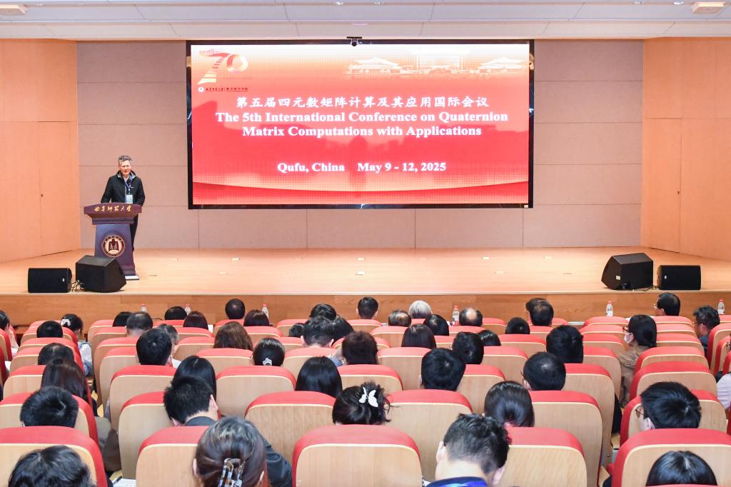 数学科学学院讯 5月9日至12日,第五届四元数矩阵计算及其应用国际会议在万象城手机网页版登录入口召开。本次会议由曲阜师大数学科学学院主办,吸引了来自国内外60余所院校的150多位专家学者齐聚一堂共襄学术盛会。大会学术委员会主席、上海师范大学魏木生教授,俄罗斯萨哈共和国科学院院士、东北联邦大学Vasiliy I. Vasil’ev教授,俄罗斯科学院通讯院士、俄罗斯人民友谊大学Galina Lazareva教授,国际著名数学家、香港理工大学荣休教授祁力群教授等出席会议。万象城手机网页版登录入口校领导出席开幕式并致辞。