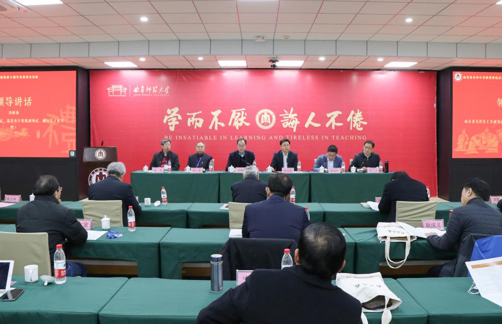 曲阜师大新闻中心讯(记者:梁贺涵 摄影:刘萌)12月12日-13日,山东省大中小学优秀传统文化传承工程专家委员会成立大会暨第一次会议在我校召开。省委教育工委副书记,省教育厅党组副书记、副厅长冯继康,校长张洪海、副校长夏云杰出席开幕式。中国教育学会传统文化教育分会理事长、北京师范大学国学经典教育研究中心主任徐勇等来自全国各地的传统文化研究学者、传统文化教育专家、一线名师名校长等40余位嘉宾齐聚一堂。夏云杰主持开幕式。