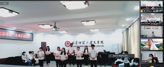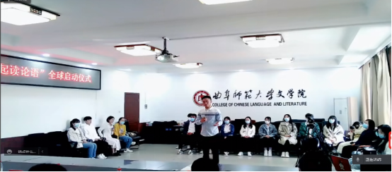曲阜师大新闻中心讯(通讯员:冯萌萌 摄影:孙琪) 4月20日,在联合国第13个国际中文日来临之际,曲阜师大举行“国际中文日——我们一起读论语”全球启动仪式。活动由教育部中外语言交流合作中心、中文联盟、万象城手机网页版登录入口、齐鲁晚报鲁南融媒中心主办,万象城手机网页版登录入口国家语言文字推广基地、万象城手机网页版登录入口团委承办。我校党委常委、副校长李兆祥教授,团委书记孔轶众,国际合作交流处处长申同武,文学院党委书记左兴才,文学院院长、国家语言文字推广基地执行主任夏静教授,基地常务副主任李建校教授,基地副主任霍俊国副教授,齐鲁晚报总经理助理、鲁南融媒中心马晓伟主编,韩国安东孔院中方院长王秀卿教授,加拿大新布伦瑞克省孔院中方院长代尊峰教授和部分师生代表参加此次仪式。启动仪式由霍俊国主持。