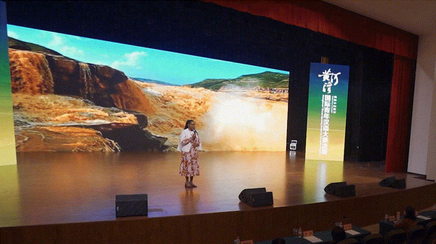 来自加纳的麦克斯“我愿做保卫黄河、宣传黄河的践行者”慷慨激昂的宣讲掷地有声;法国的路易想把中国发展黄河的理念带回自己的国家;纳米比亚的琳达身着旗袍,唱着雄浑有力的黄河号子,让在场师生真切感受到 “黄河是一部厚重的文化史,也是奋进的开放史”;肯尼亚的顾瑞秋讲述了她从青海黄河河段感受到的百折不挠,自强不息的中华民族精神;缅甸的尹润敏身着缅甸传统服饰,与大家分享了她外婆口中黄河是家的代名词的温暖记忆;俄罗斯的丽萨通过三里河文明的器物纹饰,讲述了东西方先民对大河之美的共同理解。