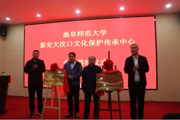 曲阜师大历史文化学院讯 11月10日,曲阜师大历史文化学院与泰安大汶口文化保护传承中心合作签约仪式在大汶口遗址博物馆举行。历史文化学院副院长王京传、党委副书记王建阳,泰安市文化和旅游局党组成员、副局长张磊,泰安市文物事业管理局局长田学峰,泰安大汶口文化保护传承中心主任张保卫出席签约仪式,张保卫同志主持会议。