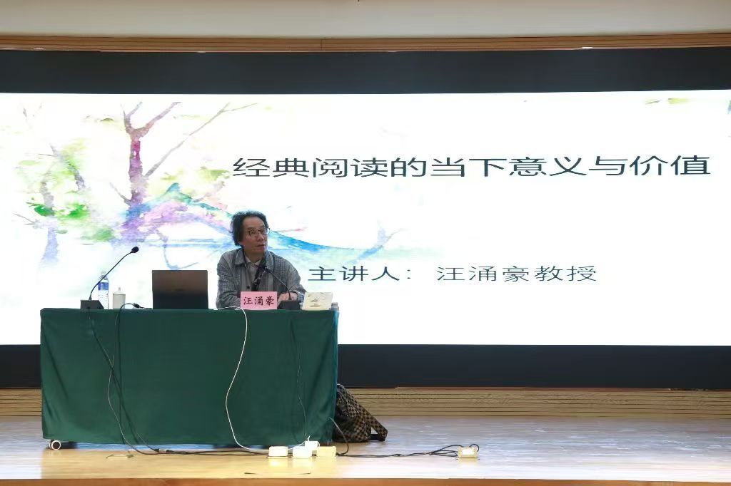 在《经典阅读的当下意义与价值》报告中,汪教授从“读图、读网与‘浅阅读’危机”“何谓经典”“经典阅读的意义与价值”和“阅读观念的树立”四个方面全面、系统、深入地阐释了经典阅读的当下意义与价值。他指出:“不能仅将经典局限在古今中外的文学名著上,许多人文社科类著作,包括一部分自然科学著作,因对人的处境有真切的关心,对人生在这个世界上的命运有深刻周彻的肯认,对人内心经验有感同身受的体谅,并精鹜八极,鞭辟入里,也都是经典,都应成为我们阅读的重点。”他认为经典阅读“有对普遍性和本原特征的热切关注,能助人了解世界,观照自我,因此提供给人的是切切实实的精神养料”,“经典阅读是一个沉静与沉思的过程,在这种沉静沉思中,我们不仅使书中文字活起来,充实我们,还使它因我们的理解得到延展与增值”。他强调“只有悠闲自得同时越然功利之上的人,才能真正读取这个世界最杳渺的真谛,并保持阅读最高上的品质”,“在经典阅读中,我们能够与“伟大的心灵相遇“,体会“久已失传的乐趣”,真正“认识你自己”。