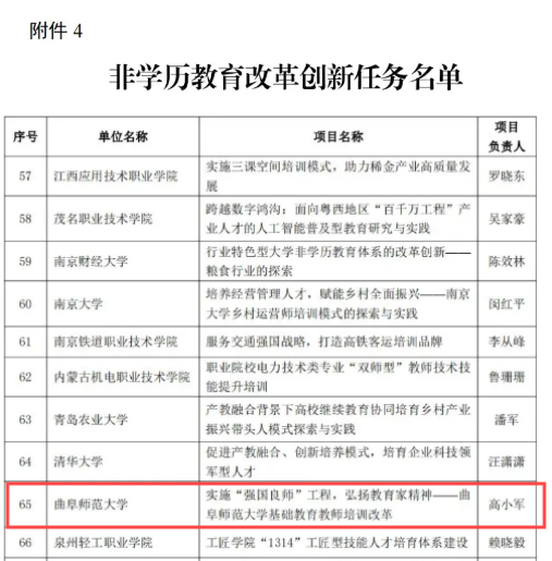 继续教育学院讯 近日,教育部发布了《2024 年学习型社会建设重点任务(高等继续教育领域)培育建设名单》,曲阜师大继续教育学院高小军副教授的《实施“强国良师”工程,弘扬教育家精神——万象城手机网页版登录入口...