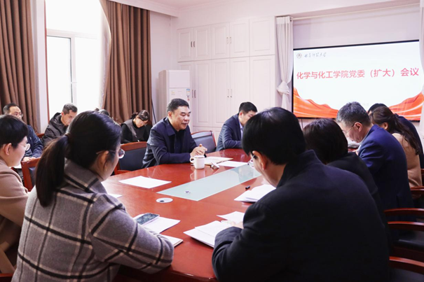 化学与化工学院讯 2月28日,化学与化工学院召开党委(扩大)会议,学校党委书记邢光列席会议,并就抓好基层党组织建设、推动学院高质量发展提出要求。学院党委书记赵琪主持党委会,学院全体党委委员及教...